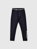 左裾にロゴがプリントされた、ボードショーツの下に履くレギンス。