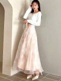 クリア感あるオーガンジーを使用したことで、透明感あるマーブル柄を演出しました。