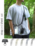スマートフォンとスマホケースに挟むだけでストラップやスマホショルダーが取り付けられるストラップ接続ホルダーシート。